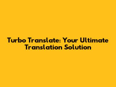 Turbo Translate: Your Ultimate Translation Solution