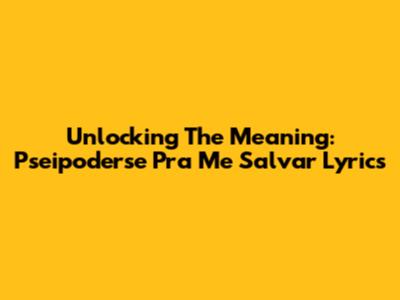 Unlocking The Meaning: Pseipoderse Pra Me Salvar Lyrics
