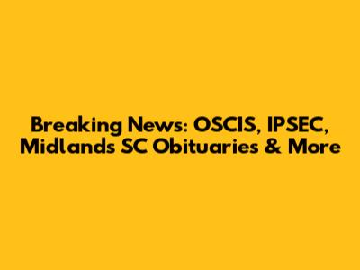 Breaking News: OSCIS, IPSEC, Midlands SC Obituaries & More