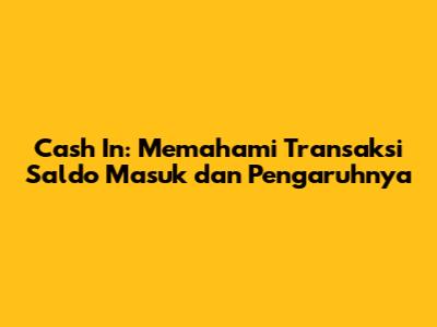 Cash In: Transaksi Saldo Masuk Yang Perlu Kamu Tahu!