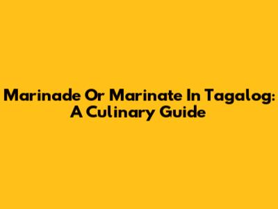 Marinade Or Marinate In Tagalog: A Culinary Guide