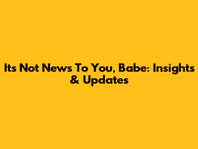 It's Not News To You, Babe: Insights & Updates