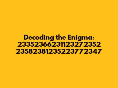 Okay, so let's brainstorm some potential interpretations of this numerical string. The number 23352366231123272352 23582381235223772347 could be a variety of things, depending on the context. One possibility is that it's a unique identifier. In computer systems and databases, long strings of numbers are often used to identify specific records, transactions, or users. Think of it like a digital fingerprint – each one is unique and points to a specific piece of information. If this is the case, the number itself might not have any inherent meaning, but it serves as a pointer to something else.