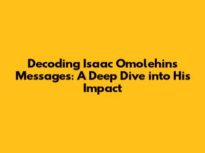 Hey guys! Ever heard of Isaac Omolehin? If you're into leadership, motivation, or just generally trying to level up your life, you've probably stumbled upon his name. He's been making waves with his insightful messages, and today, we're going to dive deep into what makes his words so impactful. We'll explore his key themes, the strategies he uses to connect with his audience, and why his messages resonate so strongly with so many people. Buckle up, because we're about to decode the world of Isaac Omolehin's messages!