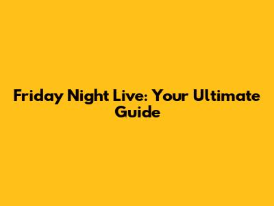Friday Night Live: Your Ultimate Guide