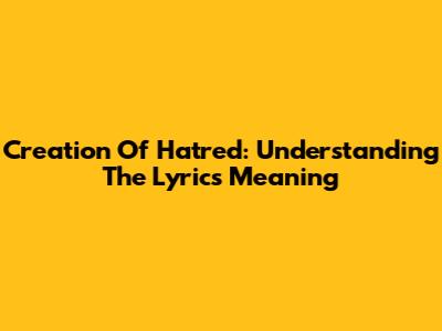 Creation Of Hatred: Understanding The Lyrics Meaning