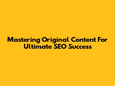 Mastering Original Content For Ultimate SEO Success