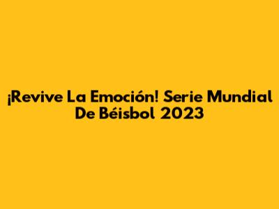 ¡Revive La Emoción! Serie Mundial De Béisbol 2023
