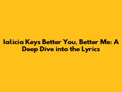 Hey everyone! Let's dive into the soulful world of Alicia Keys and dissect the lyrics of her track, "Better You, Better Me." This song isn't just a catchy tune; it's a deep exploration of self-improvement, relationships, and the journey toward becoming the best version of ourselves. I'm going to break down the key themes, musicality, and overall message of the song. It's time to explore the deeper meaning behind these powerful words and maybe even gain some inspiration for our own lives. Buckle up, music lovers, because we're about to go on a lyrical adventure! I'll be your guide as we navigate the emotional landscape that Alicia Keys crafts with her beautiful voice and poetic songwriting. Get ready to feel, think, and connect with the heart of this fantastic song. Let's get started!
