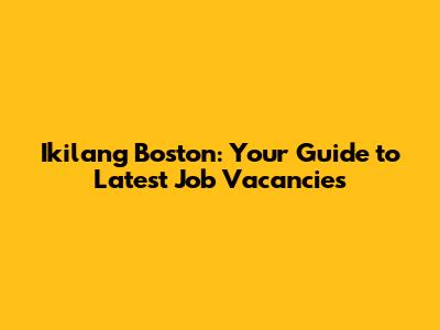 Ikilang Boston: Latest Job Vacancies