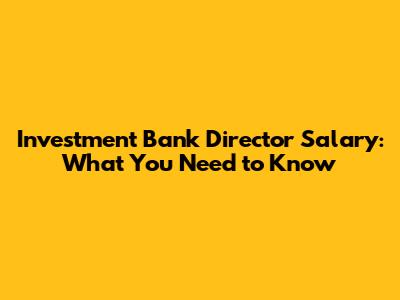 Investment Bank Director Salary: What You Need To Know