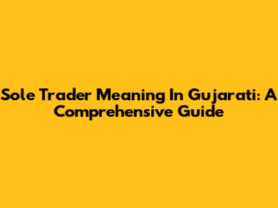 Sole Trader Meaning In Gujarati: A Comprehensive Guide