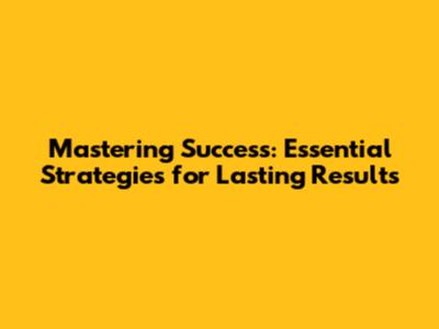 Mastering Success: Essential Strategies For Lasting Results