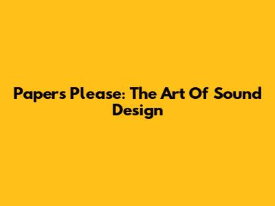 Papers Please: The Art Of Sound Design