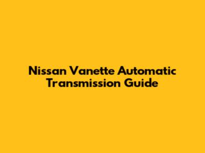 Nissan Vanette Automatic Transmission Guide