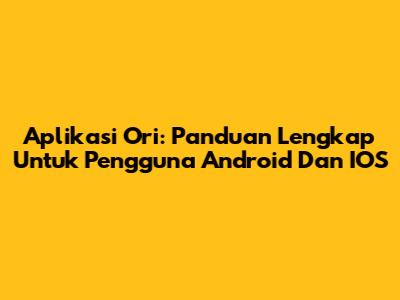 Aplikasi Ori: Panduan Lengkap Untuk Pengguna Android Dan IOS