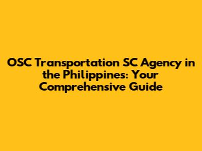 Understanding OSC Transportation SC in the Philippines: What's the Deal?