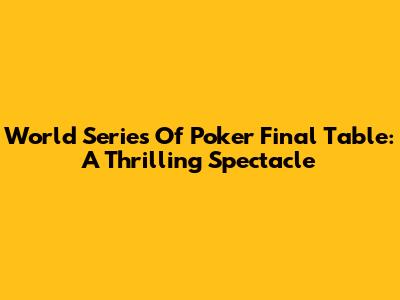 World Series Of Poker Final Table: A Thrilling Spectacle