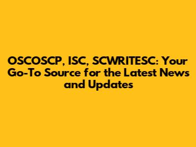 OSCOSCP, ISC, SCWRITESC: Latest News And Updates