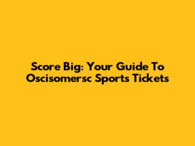 Score Big: Your Guide To Oscisomersc Sports Tickets