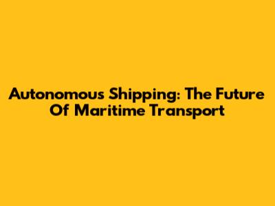 Autonomous Shipping: The Future Of Maritime Transport