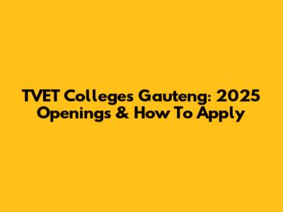 TVET Colleges Gauteng: 2025 Openings & How To Apply