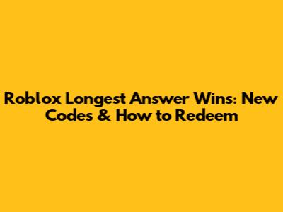 Roblox Longest Answer Wins is a fantastic game that combines creativity, competition, and a whole lot of fun. By finding and redeeming codes, you can unlock valuable rewards that give you an edge in the game. Remember to follow the official channels, engage with the community, and keep those typing skills sharp. With a little practice and a lot of creativity, you’ll be well on your way to becoming a Roblox Longest Answer Wins champion. Happy gaming, and may the longest answer always win! Now go out there and show everyone what you've got! You are now equiped with all you need to know about the Roblox Longest Answer Wins so go forth and conquer!