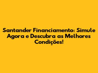 Santander financiamento resumo: O Santander Financiamento oferece diversas opções e vantagens para quem busca realizar seus sonhos. A simulação é a ferramenta essencial para você entender as condições do financiamento e planejar suas finanças. Ao seguir as dicas e informações deste guia, você estará pronto para tomar a melhor decisão e conquistar seus objetivos com segurança e tranquilidade. Não perca tempo, simule agora mesmo e comece a construir o seu futuro! Boa sorte, e que seus sonhos se tornem realidade!