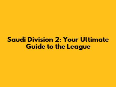 Saudi Division 2: Your Ultimate Guide
