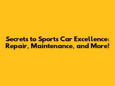 Hey car enthusiasts! Ever dreamt of owning a sleek, powerful sports car? Well, you're not alone! But owning one is just the beginning; keeping these magnificent machines in tip-top shape requires a little know-how. That's why we're diving deep into the world of sports car repair, maintenance, and everything in between. Get ready to unlock the secrets to keeping your speedster running smoothly and looking its absolute best. Whether you're a seasoned gearhead or just starting your automotive journey, this guide is packed with valuable insights to help you navigate the thrilling world of sports car ownership.