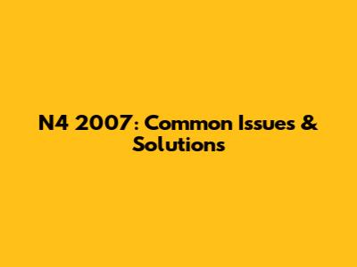 N4 2007: Common Issues & Solutions