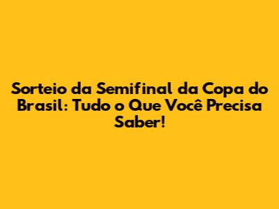 O Que é o Sorteio da Semifinal da Copa do Brasil?
