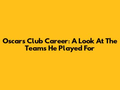 Oscar's Club Career: A Look At The Teams He Played For