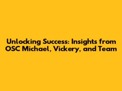 Then, focus on building a strong team. Identify the strengths and weaknesses of your team members and assign responsibilities accordingly. Just like OSC Michael, foster a culture of trust, open communication, and collaboration. Encourage teamwork and create an environment where everyone feels valued and respected. This starts with you. How can you help those around you shine? Also, invest in your team's development. Provide opportunities for training, mentorship, and skill enhancement. Just like Vickery, prioritize continuous learning and provide your team with the resources they need to grow and develop their skills. What training or development opportunities can you provide? Encourage them to push themselves and continue learning. Moreover, streamline your operations. Analyze your existing processes and identify areas for improvement. Just like Vickery, eliminate waste, automate tasks, and leverage technology to improve efficiency. Look at how you do things, and then see how you can make it better. What processes can you optimize? How can you eliminate bottlenecks and improve workflow? Next, embrace data-driven decision-making. Collect and analyze data to track performance, identify trends, and make informed decisions. Just like Vickery, use data to guide your strategies and make informed choices. What data do you need to collect? How can you use that data to improve your performance? Furthermore, foster a culture of innovation. Encourage your team members to think outside the box, challenge the status quo, and come up with new and creative solutions. Just like OSC Michael, create a safe space for experimentation and encourage risk-taking. How can you encourage more ideas to be brought to the table? What steps can you take to encourage innovation? Don't be afraid to try new things. Finally, celebrate successes and learn from failures. Recognize and reward your team's achievements and use failures as learning opportunities. This is about creating a positive and supportive environment where people are encouraged to excel. How will you recognize and celebrate achievements? How will you make sure failures are seen as learning opportunities? By implementing these actionable strategies, you can start to unlock your own success and build a thriving organization. Remember, it's not enough to know; you have to do. Take action today, and start building the success you deserve. Let's get out there and make it happen!