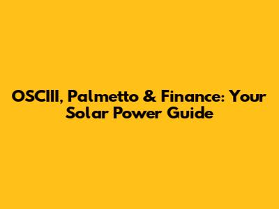 OSCIII, Palmetto & Finance: Your Solar Power Guide